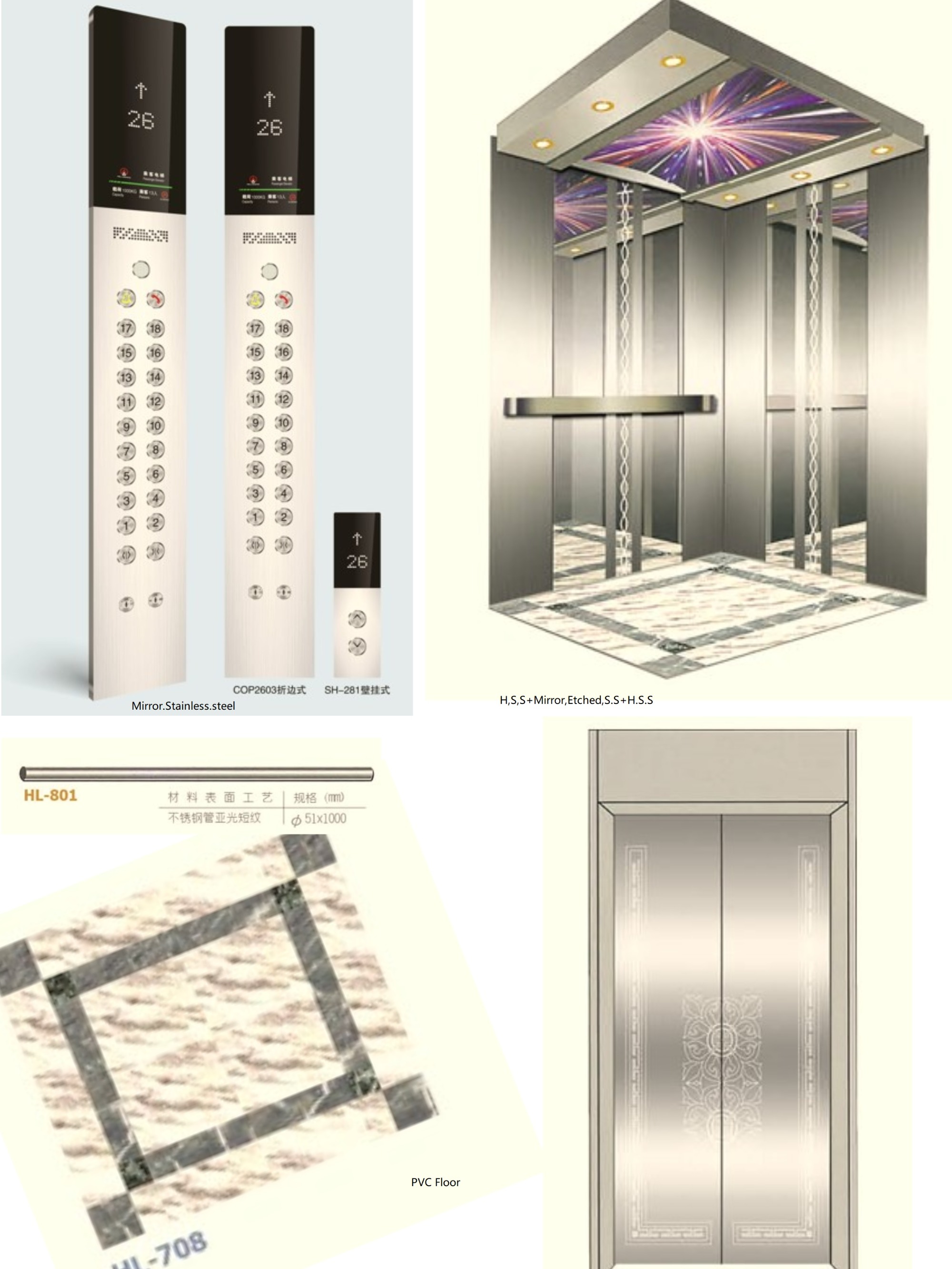 Detailed Specifications:Cabin Hairline,Stainless.Steel See Specification Provided (On the Rear Panel),Round Type Decorative Celling (See Specification) Hairline,Stainless.Steel LOP with LCD Display(Wall Mounted ) Hairline,Stainless.Steel Type with Box COP ,Monarch Control system, Input power supply: AC380V, 3PH, 50HZ. Gearless Traction Machine with ARD. Floor: PVC Floor