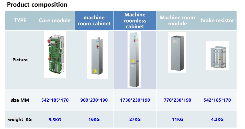 2.Design machine roomless type cabinet, only add machine roomless module and make machine room cabinet to become machine roomless.